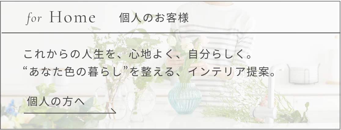 住まいが整うことで、心が整い、また一歩、前に進める。そんな「あなた色の暮らし」を応援するインテリアをお届けしたいと考えています。